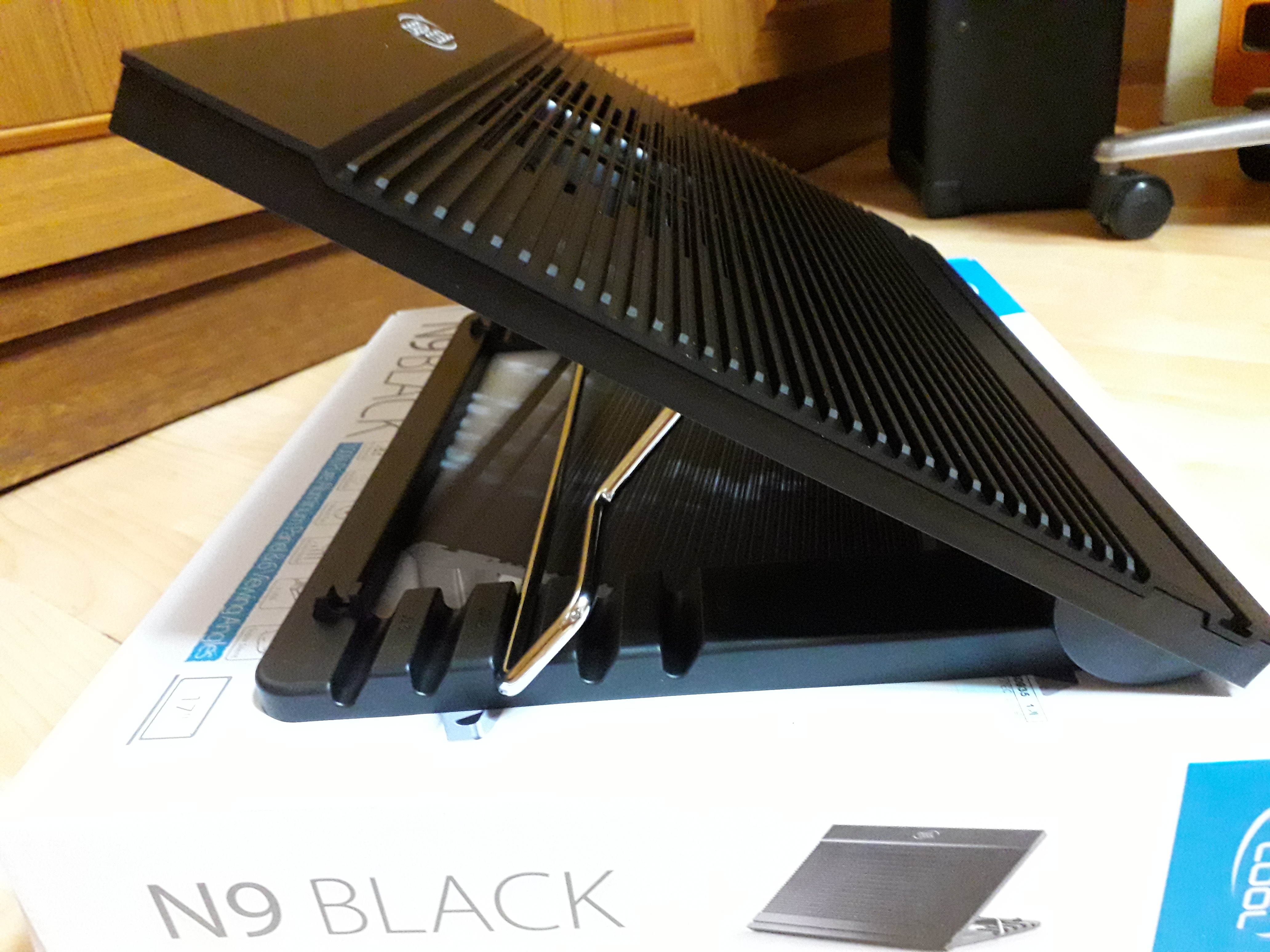 제품 박스 겉면에는 DEEPCOOL N9 노트북 쿨러의 특징과 성능을 간단하게 소개하고 있습니다.